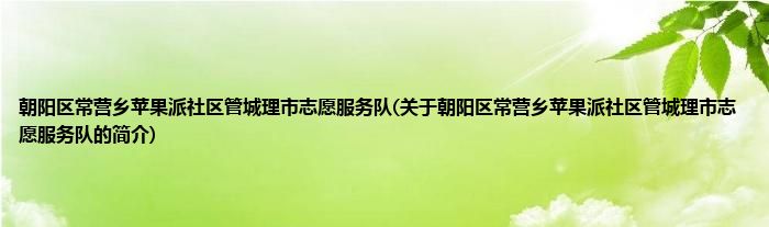 大家好,朝阳区常营乡苹果派社区管城理市志愿服务队,关于朝阳区常营乡苹果派社区管城理市志愿服务队的简介很多人还不知道,现在让我们一起来看看吧!