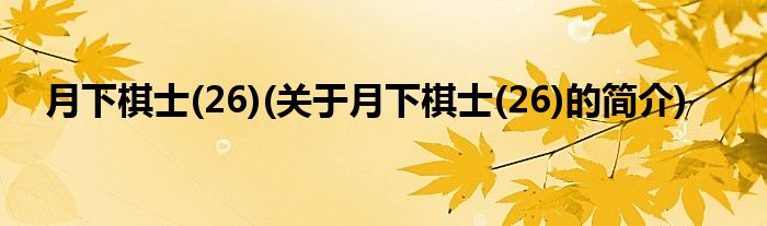 本文关于月下棋士(26)的简介就讲解完毕,希望对大家有所帮助。