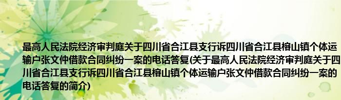 本文关于最高人民法院经济审判庭关于四川省合江县支行诉四川省合江县榕山镇个体运输户张文仲借款合同纠纷一案的电话答复的简介就讲解完毕,希望对大家有所帮助。