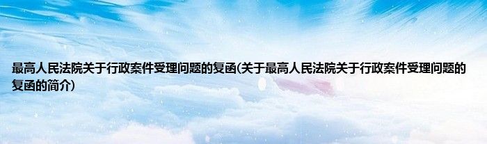 大家好,最高人民法院关于行政案件受理问题的复函,关于最高人民法院关于行政案件受理问题的复函的简介很多人还不知道,现在让我们一起来看看吧!