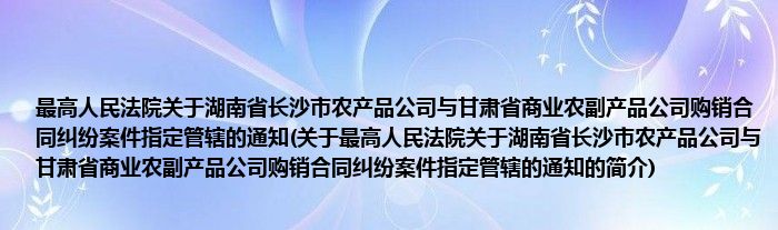 本文关于最高人民法院关于湖南省长沙市农产品公司与甘肃省商业农副产品公司购销合同纠纷案件指定管辖的通知的简介就讲解完毕,希望对大家有所帮助。