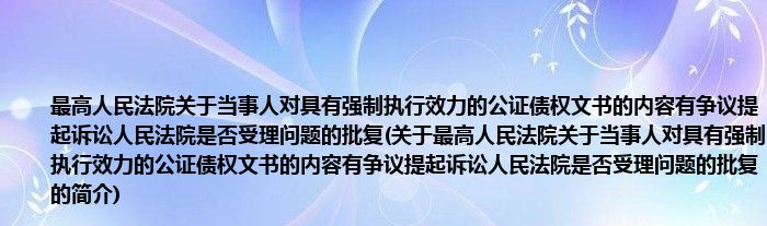 本文关于最高人民法院关于当事人对具有强制执行效力的公证债权文书的内容有争议提起诉讼人民法院是否受理问题的批复的简介就讲解完毕,希望对大家有所帮助。