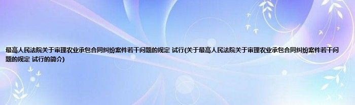 大家好,最高人民法院关于审理农业承包合同纠纷案件若干问题的规定 试行,关于最高人民法院关于审理农业承包合同纠纷案件若干问题的规定 试行的简介很多人还不知道,现在让我们一起来看看吧!