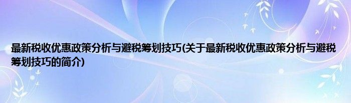 最新税收优惠政策分析与避税筹划技巧(关于最新税收优惠政策分析与避税筹划技巧的简介)
