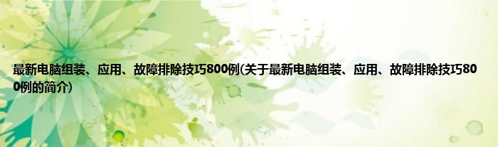 本文关于最新电脑组装、应用、故障排除技巧800例的简介就讲解完毕,希望对大家有所帮助。
