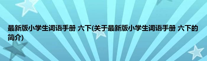 本文关于最新版小学生词语手册 六下的简介就讲解完毕,希望对大家有所帮助。