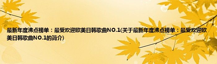大家好,最新年度沸点榜单:最受欢迎欧美日韩歌曲NO.1,关于最新年度沸点榜单:最受欢迎欧美日韩歌曲NO.1的简介很多人还不知道,现在让我们一起来看看吧!