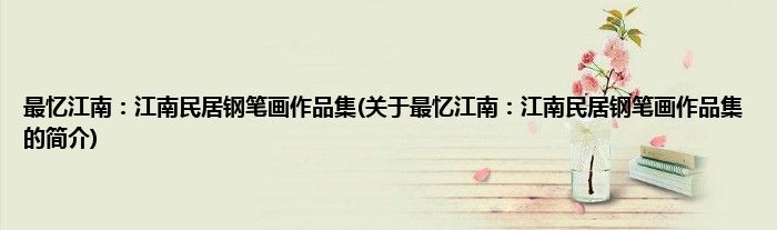 本文关于最忆江南:江南民居钢笔画作品集的简介就讲解完毕,希望对大家有所帮助。