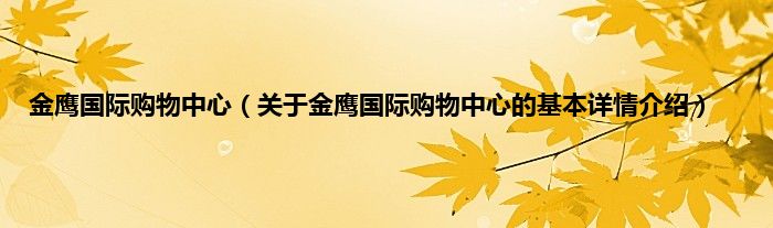 本文关于金鹰国际购物中心的基本详情介绍就讲解完毕,希望对大家有所帮助。