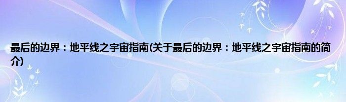 本文关于最后的边界:地平线之宇宙指南的简介就讲解完毕,希望对大家有所帮助。