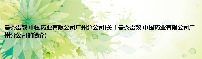 本文关于曼秀雷敦 中国药业有限公司广州分公司的简介就讲解完毕,希望对大家有所帮助。