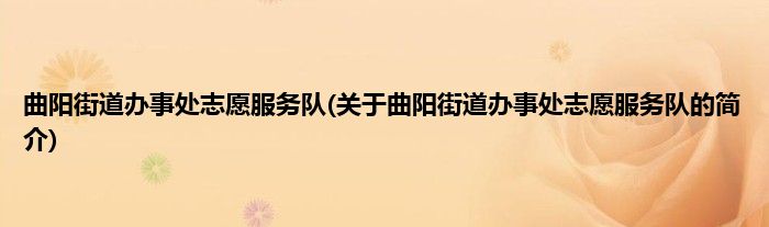 本文关于曲阳街道办事处志愿服务队的简介就讲解完毕,希望对大家有所帮助。