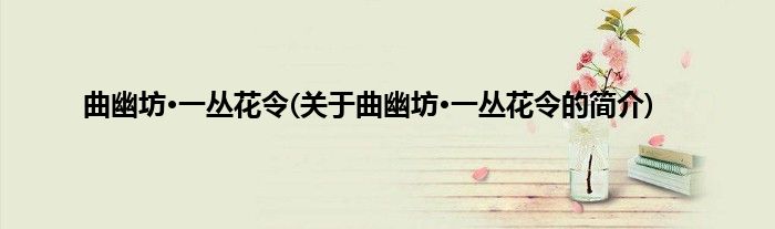 大家好,曲幽坊·一丛花令,关于曲幽坊·一丛花令的简介很多人还不知道,现在让我们一起来看看吧!