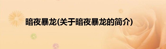 暗夜暴龙(关于暗夜暴龙的简介)