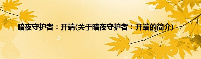 本文关于暗夜守护者:开端的简介就讲解完毕,希望对大家有所帮助。