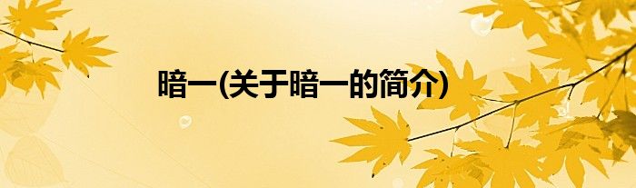 暗一(关于暗一的简介)