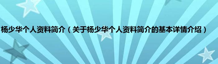 本文关于杨少华个人资料简介的基本详情介绍就讲解完毕,希望对大家有所帮助。