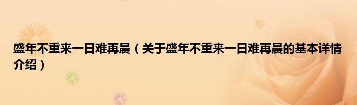 本文关于盛年不重来一日难再晨的基本详情介绍就讲解完毕,希望对大家有所帮助。