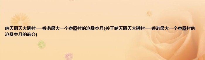 本文关于晴天雨天大磡村──香港最大一个寮屋村的沧桑岁月的简介就讲解完毕,希望对大家有所帮助。