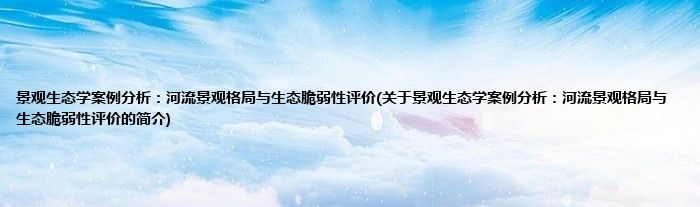 本文关于景观生态学案例分析:河流景观格局与生态脆弱性评价的简介就讲解完毕,希望对大家有所帮助。