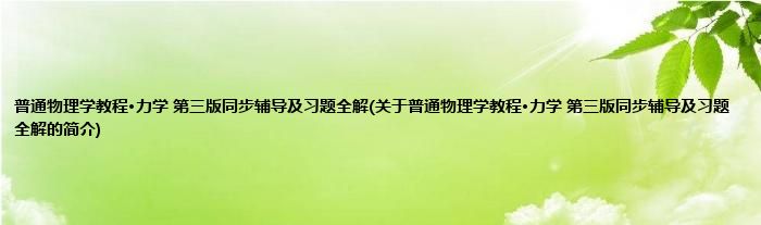 本文关于普通物理学教程·力学 第三版同步辅导及习题全解的简介就讲解完毕,希望对大家有所帮助。