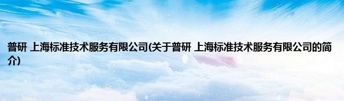 普研 上海标准技术服务有限公司(关于普研 上海标准技术服务有限公司的简介)