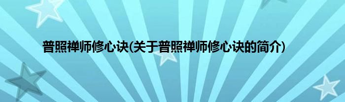 大家好,普照禅师修心诀,关于普照禅师修心诀的简介很多人还不知道,现在让我们一起来看看吧!