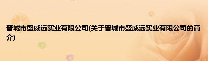 本文关于晋城市盛威远实业有限公司的简介就讲解完毕,希望对大家有所帮助。