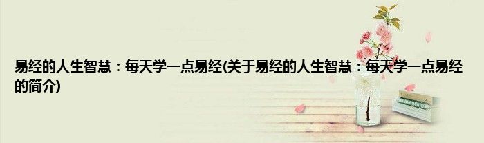 本文关于易经的人生智慧:每天学一点易经的简介就讲解完毕,希望对大家有所帮助。