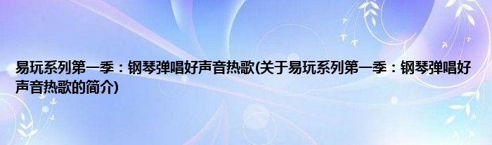 大家好,易玩系列第一季:钢琴弹唱好声音热歌,关于易玩系列第一季:钢琴弹唱好声音热歌的简介很多人还不知道,现在让我们一起来看看吧!