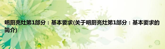 大家好,明厨亮灶第1部分:基本要求,关于明厨亮灶第1部分:基本要求的简介很多人还不知道,现在让我们一起来看看吧!