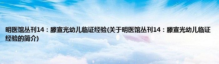 1、 《明医馆丛刊14:滕宣光幼儿临证经验》是2016年5月1日北京科学技术出版社出版的图书,作者是滕宣光。