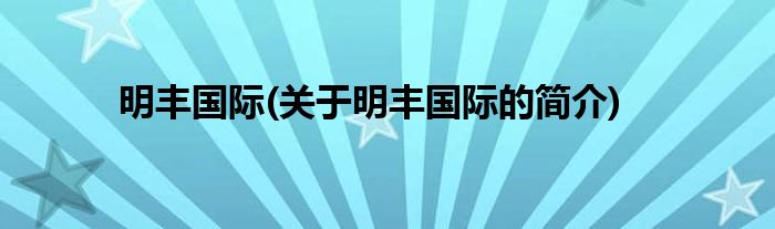 本文关于明丰国际的简介就讲解完毕,希望对大家有所帮助。