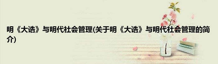 本文关于明《大诰》与明代社会管理的简介就讲解完毕,希望对大家有所帮助。