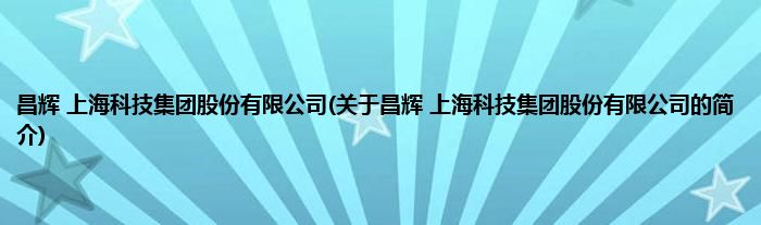 本文关于昌辉 上海科技集团股份有限公司的简介就讲解完毕,希望对大家有所帮助。