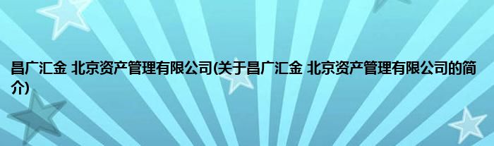 本文关于昌广汇金 北京资产管理有限公司的简介就讲解完毕,希望对大家有所帮助。