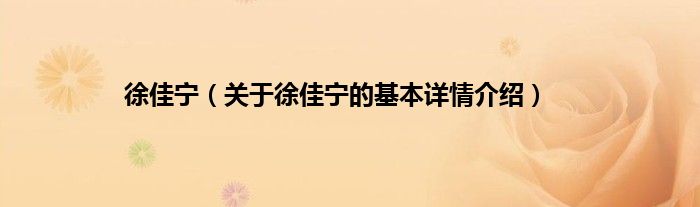 本文关于徐佳宁的基本详情介绍就讲解完毕,希望对大家有所帮助。