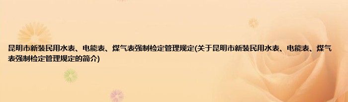 本文关于昆明市新装民用水表、电能表、煤气表强制检定管理规定的简介就讲解完毕,希望对大家有所帮助。