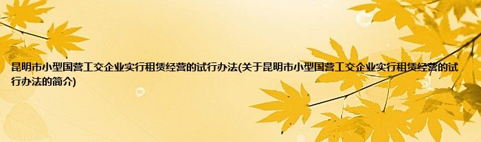 大家好,昆明市小型国营工交企业实行租赁经营的试行办法,关于昆明市小型国营工交企业实行租赁经营的试行办法的简介很多人还不知道,现在让我们一起来看看吧!