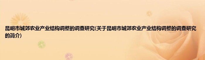 本文关于昆明市城郊农业产业结构调整的调查研究的简介就讲解完毕,希望对大家有所帮助。