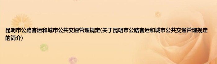 大家好,昆明市公路客运和城市公共交通管理规定,关于昆明市公路客运和城市公共交通管理规定的简介很多人还不知道,现在让我们一起来看看吧!