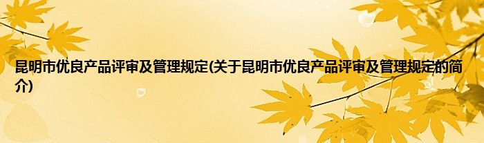 大家好,昆明市优良产品评审及管理规定,关于昆明市优良产品评审及管理规定的简介很多人还不知道,现在让我们一起来看看吧!