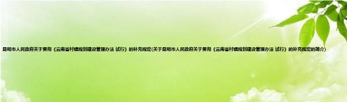 昆明市人民政府关于贯彻《云南省村镇规划建设管理办法(试行)》的补充规定在1988.11.01由昆明市人民政府颁布。