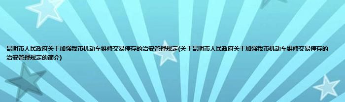 1、 《昆明市人民政府关于加强我市机动车维修交易停存的治安管理规定》在1999.02.13由昆明市人民政府颁布。