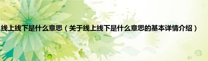 本文关于线上线下是什么意思的基本详情介绍就讲解完毕,希望对大家有所帮助。