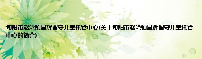 本文关于旬阳市赵湾镇星辉留守儿童托管中心的简介就讲解完毕,希望对大家有所帮助。