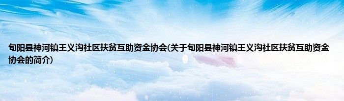 本文关于旬阳县神河镇王义沟社区扶贫互助资金协会的简介就讲解完毕,希望对大家有所帮助。