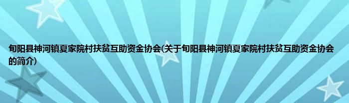 本文关于旬阳县神河镇夏家院村扶贫互助资金协会的简介就讲解完毕,希望对大家有所帮助。