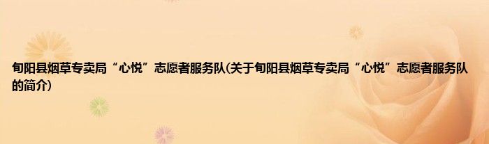 本文关于旬阳县烟草专卖局“心悦”志愿者服务队的简介就讲解完毕,希望对大家有所帮助。