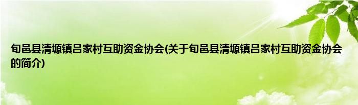 本文关于旬邑县清塬镇吕家村互助资金协会的简介就讲解完毕,希望对大家有所帮助。